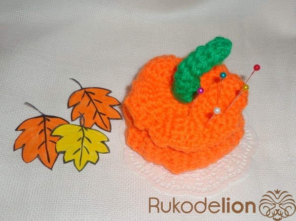 Какая красивая, яркая тыковка-игольница! Просто прелесть!