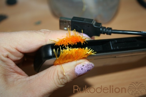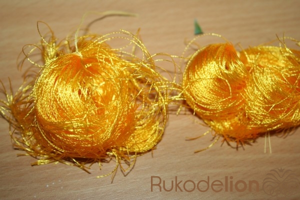 Получаются пушистики с которыми трудно справиться. Берем пины и продеваем их под не вискозной ниткой по серединке так чтоб петелька была под обмоткой. И идем кипятить чайник ^_^(секет3: на конце пина я загибаю маленький крючек чтоб при следующем шаге не обжечь руки)