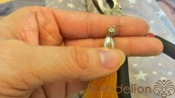 Одев бусину делаем петельку на пине. Отгибаем его под 90 градусов, обрезаем лишнее и круглогубцами закручиваем петельку. Одеваем швензу и закрываем петельку. ТА-ДА!!!