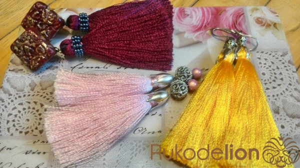 П.С.: На фото серьги цвета марсала на основе пусет кисточки на 500 мотков. а розовые на 300.