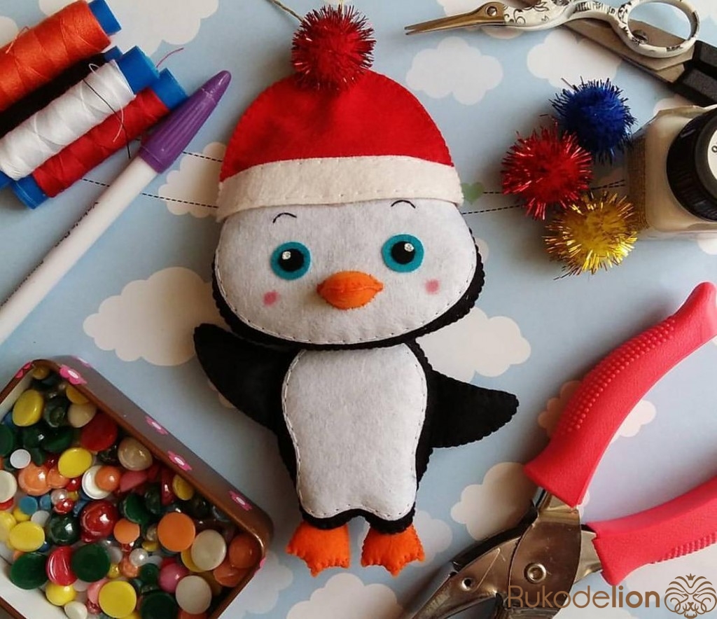 Сегодня вместе с вами мы будем делать милого пингвина! Такой пингвин может украсить детский мобиль, гирлянду в кроватку или именное панно. А так как весь рукодельный мир уже во всю готовится к новому году, мы сделаем нашего пингвиненка еще и как игрушку на ёлку и подарим ему новогоднюю шапочку!