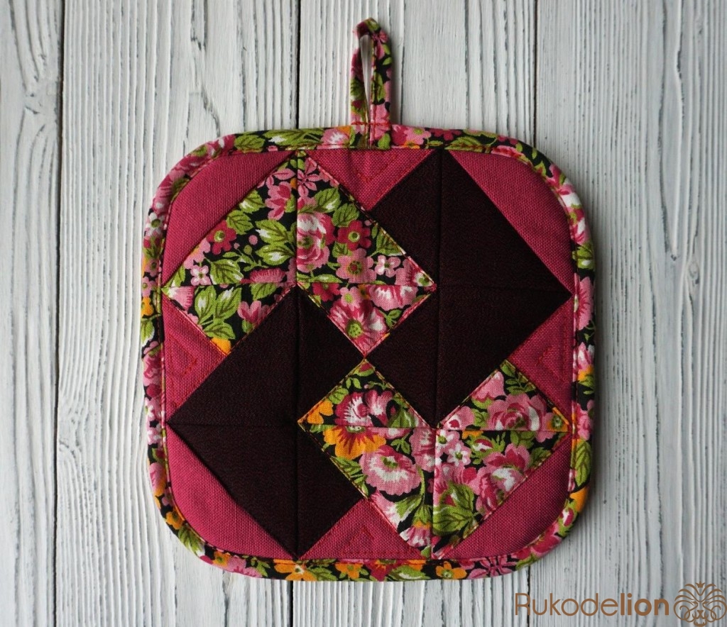 Кухонная прихватка в стиле пэчворк, блок называется "Карточный фокус"