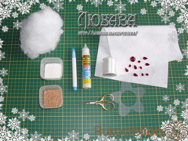 Выводим иглу на лицевую сторону, отступит от края 3 мм. Набираем на иглу 6 бисерин белого цвета, вводим иглу с задней стороны и прокалываем край звёздочки на сквозь, (как бы обмётываем край, только с бисером). Бисер чередуем, стежок белым бисером, затем стежок золотым бисером.
