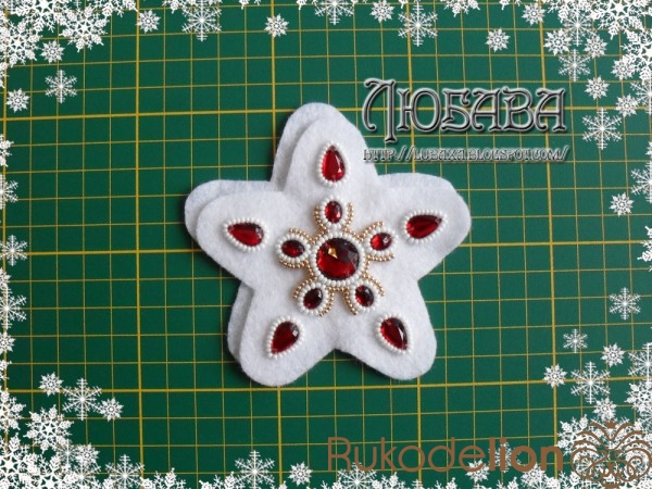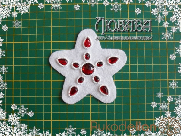 Вот наша звездочка почти готова, осталось только обшить край бисером.