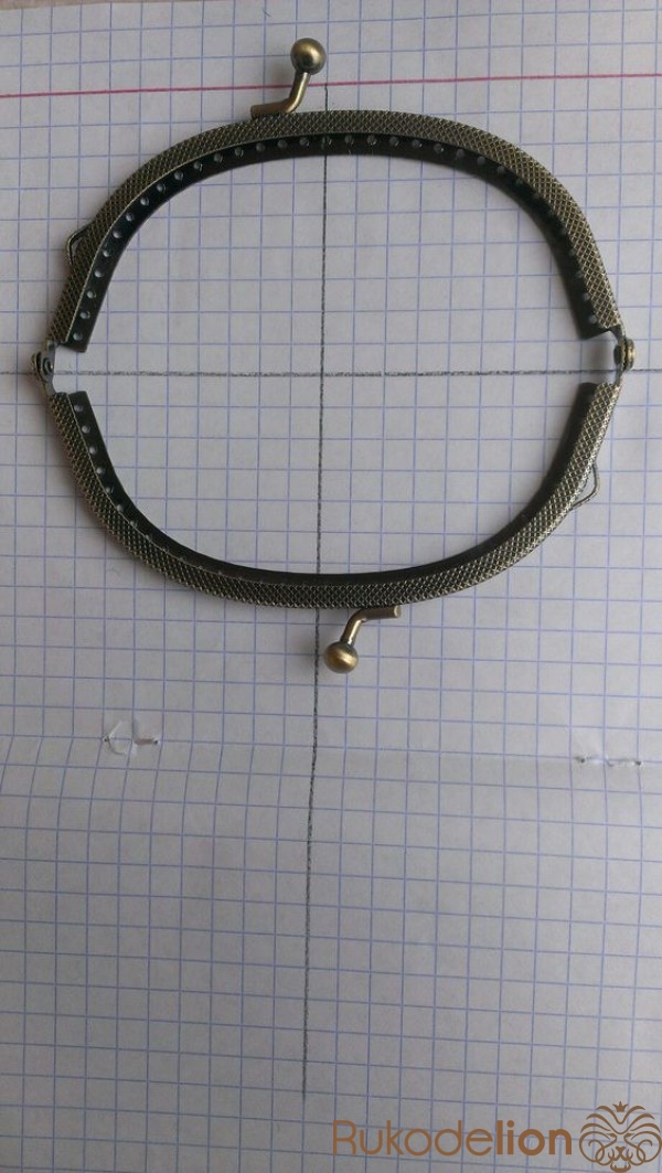 Чертим на бумаге в клетку две перпендикулярные линии (ось координат), раскладываем наш фермуар точно посередине, обводим фермуар правую верхнюю часть (по внешней части фермуара).