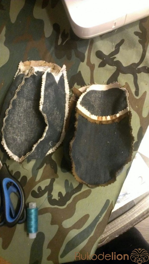 Сметываем переднии и боковую части, проверяем себя, когда вводите иглу смотрите на обратную сторону, чтобы шов шел вдоль края границы дублерина. Сшиваем на машинке, обрабатываем припуски ножницами зигзаг или делаем обычными ножницами насечки, чтобы при выворачивании не было стянутых частей. По такому же принципу сшиваем подкладку кошелька.