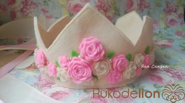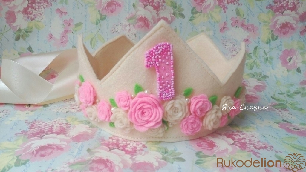 Фетровая корона с розочками будет радовать не только в ее первый День Рождения, а и в любой другой праздник благодаря съемной единичке.