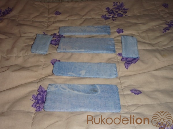2.4) На четвёртом фото нашего коллажа - боковые части спинки. Модели чехлов здесь нарисованы так же, как и наши предыдущие чехлы (для несущей конструкции и элементов диванного сидения). А вот прошивка здесь понадобится - как и для чехлов верхней-нижней частей. Процесс здесь будет таким же - выворачиваем на лицевую сторону и работаем швом "петельным". И, конечно, нужно не забыть: вставить картонный каркас в каждый из подобных чехлов, в определённый, нужный момент.