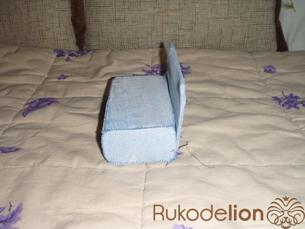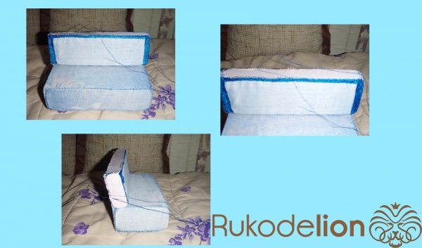 2.3) Можно полюбоваться на готовый чехол :-). Он уже вывернут на лицевую сторону, в нём находится вставленная картонная "несущая конструкция", и отверстие - благополучно зашито швом "петельным" - после вставки внутрь, картона. Схема - как мы видим - та же, что и для предыдущих чехлов.