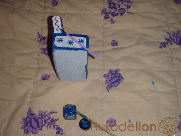 2.1) Это - синяя краска для ткани. Ею мы затем декорируем переднюю часть диванной спинки: нарисуем по её контурам три обрамляющие синие линии - для закрашивания швов, и для особенного шарма :-).