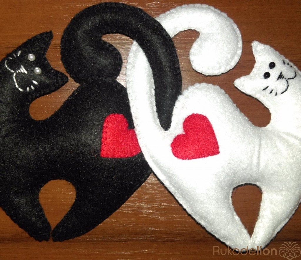 Влюблённые котики выполнены из фетра. Внутри магнит.