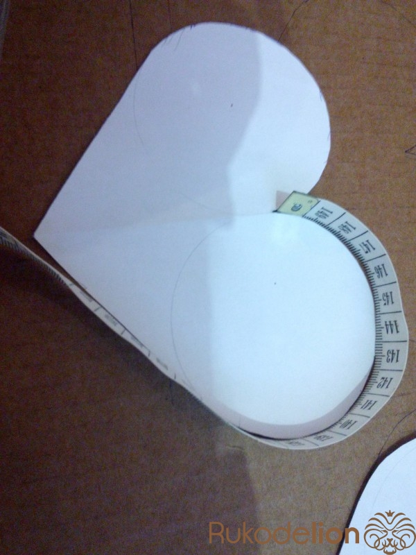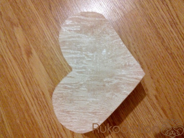 1. Вырезаем из бумаги шаблон в форме сердца. По шаблону рисуем две детали в форме сердца на плотном картоне, вырезаем их (картон лучше вырезать канцелярским ножом). У нас получились крышка и дно коробочки. Сантиметровой лентой измеряем боковую часть сердца, это будет длина боковой стенки коробочки, ширину определяйте сами (в данном случае 6 см.) Нам понадобится две таких детали (боковые стороны коробочки). Итак, у нас получились две детали в форме сердца (крышка, дно) и две прямоугольных детали (боковые стороны).