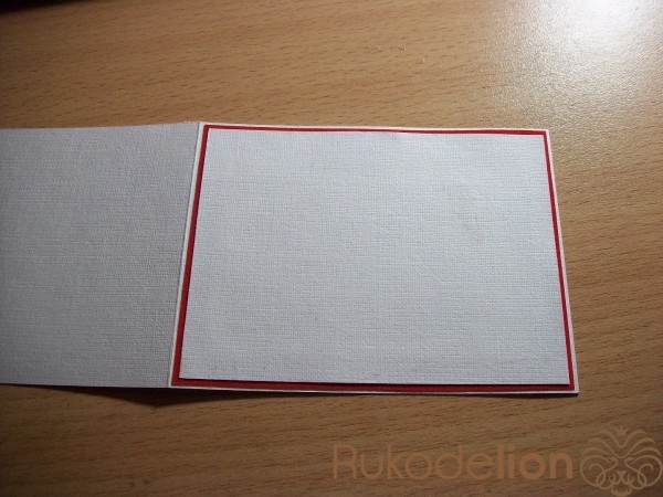 Наклеиваем на открытку бархатную бумагу ее размер 9x12 см на 2 мм меньше чем основа. Далее поверх бархатной бумаги приклеиваем листок белой бумаги ее размер 8,7 x 11,7 см на 2 мм меньше чем бархатная бумага.