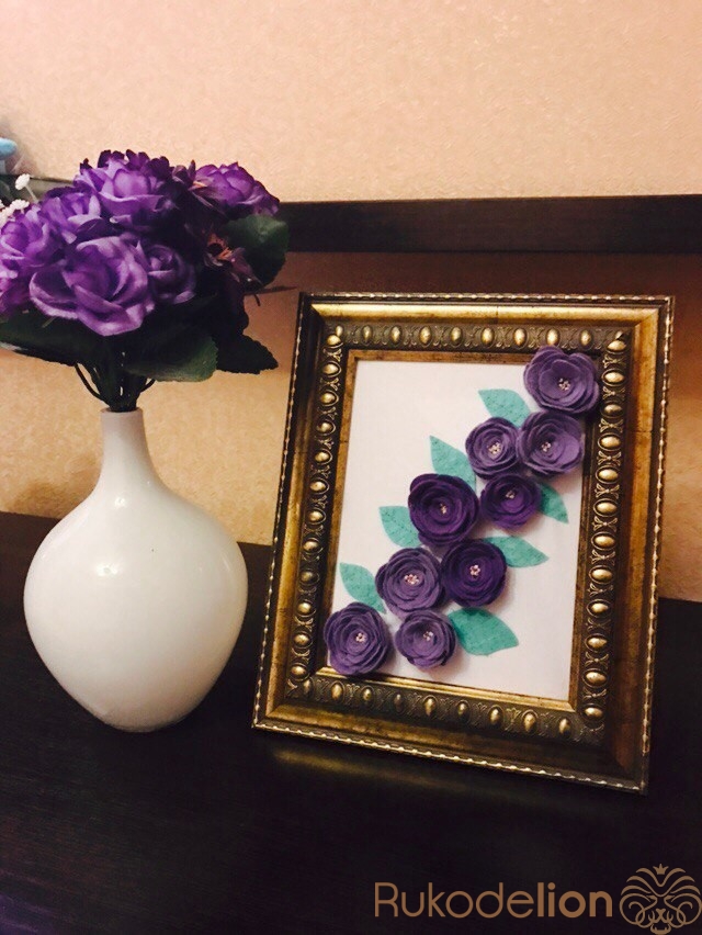 Картина "Нежная роза" фетр жесткий, фиолетовый, сиреневый, зеленый, нитки мулине