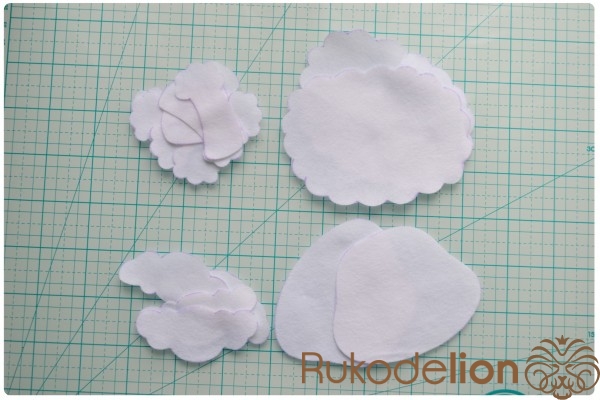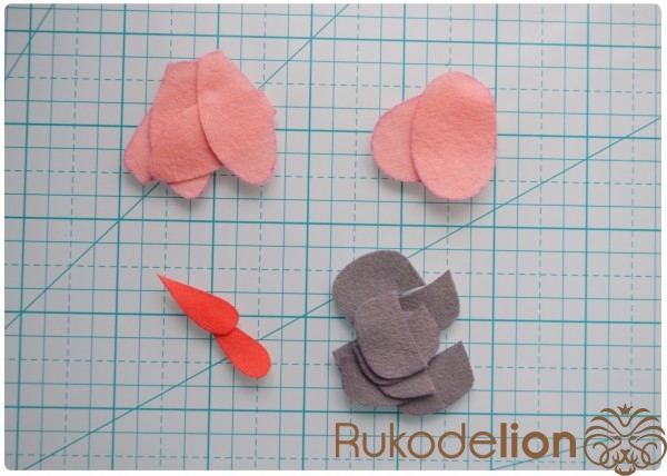 1. Фетр: белый, серый, розовый, коралловый, голубой, черный (я буду использовать испанский, полиэстеровый, мягкий, тонкий (0,5 мм) фетр)