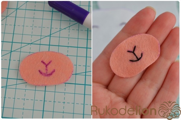 3. Инструменты и прочее: самоисчезающий маркер, синтепон, ножницы, иголка, клей Момент Кристалл (либо любой другой ваш любимый текстильный клей), клеевой пистолет, дырокол по фетру, белая краска по ткани, румяна