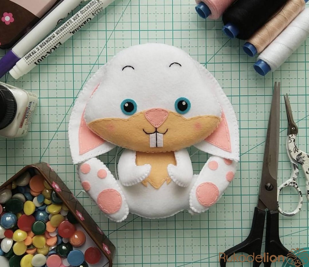 3. Инструменты и прочее: иголка, ножницы, синтепон, помпон, самоисчезающий маркер, дырокол по фетру, клей Момент Кристалл либо любой другой ваш любимый текстильный клей, клеевой пистолет, румяна, белая краска по ткани