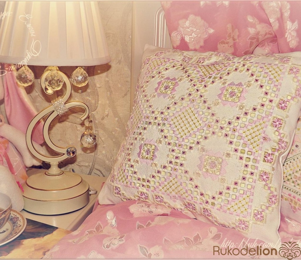 Подушка "Ванильный зефир" с ручной вышивкой в технике хардангер по собственному дизайну. Размер вышивки 142 на 142 стежка.