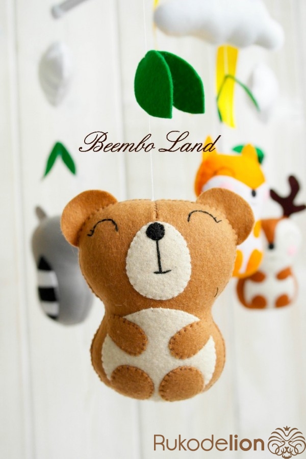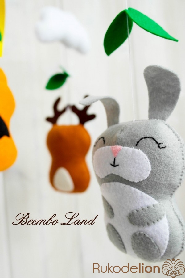 Из за обтекаемой формы игрушки удобно держать в руках. Все прошито, нет мелких деталей, а значит когда малыш перерастет мобиль игрушки можно срезать и превратить в игровой набор пищащих жителей леса.