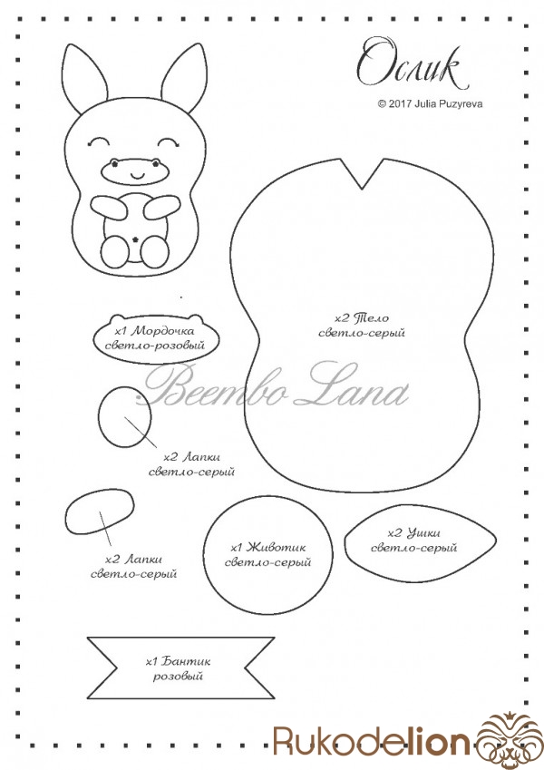 *Я распечатываю в 2-х экземплярах и приклеиваю вырезанные детали к фетру скотчем. Это позволяет рассчитать количество материала, сокращает время на раскрой и детали получаются более ровные.