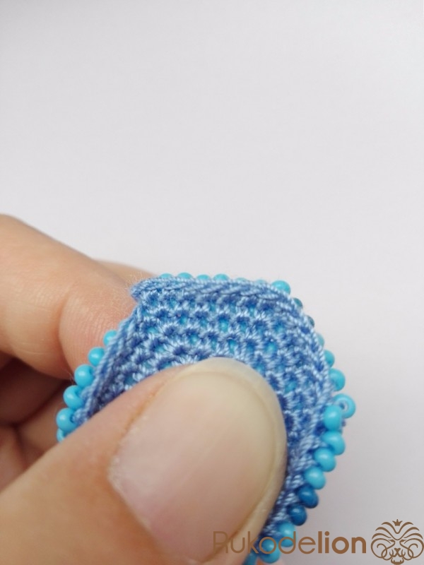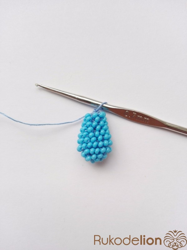 16-17 ряды по 9 бисерин. Вяжем без изменения количества бисерин.