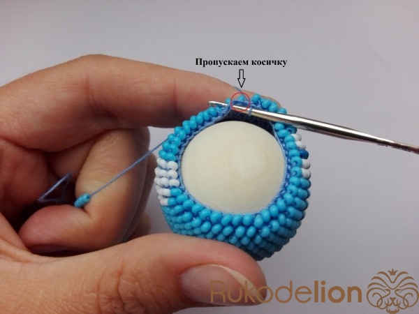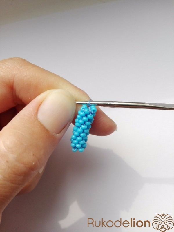 19-20 ряды по 6 бисерин. Вяжем без изменения количества бисерин.