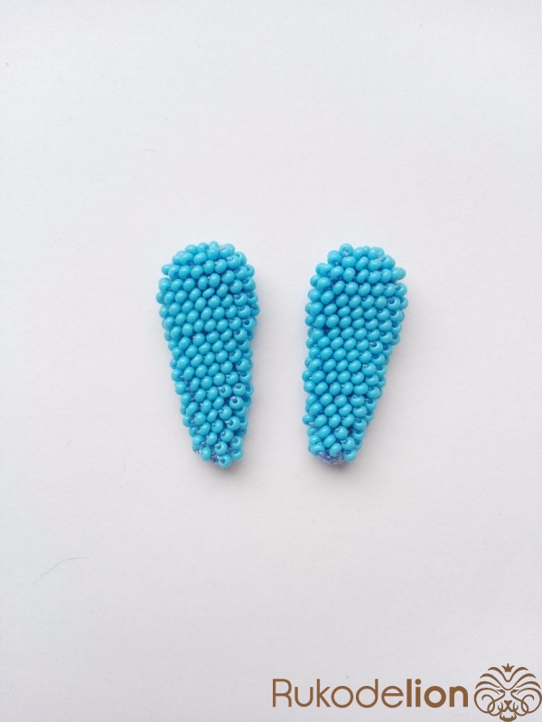 Уши вяжутся столбиком. 1 ряд - 6 бисерин, 2 и 3 ряды по 9 бисерин, 4 и 5 ряды по 6 бисерин, 6 ряд - 3 бисеринки.
