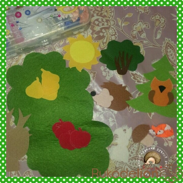 Развивающий коврик в машину. Выполнен из жесткого и мягкого фетра. На липучках.