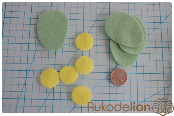 1. Фетр: синий, черный, зеленый, бежевый, желтый (обычно я использую испанский полиэстеровый фетр, но в этот раз я остановилась на корейском (1 мм толщиной), так как в гамме испанского фетра не нашла нужные мне оттенки)