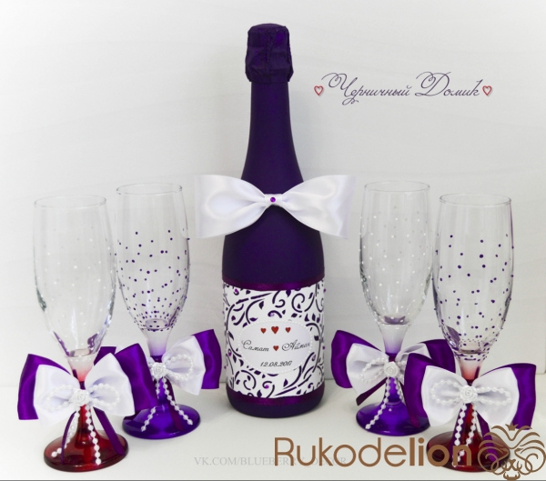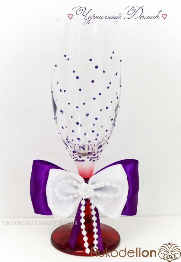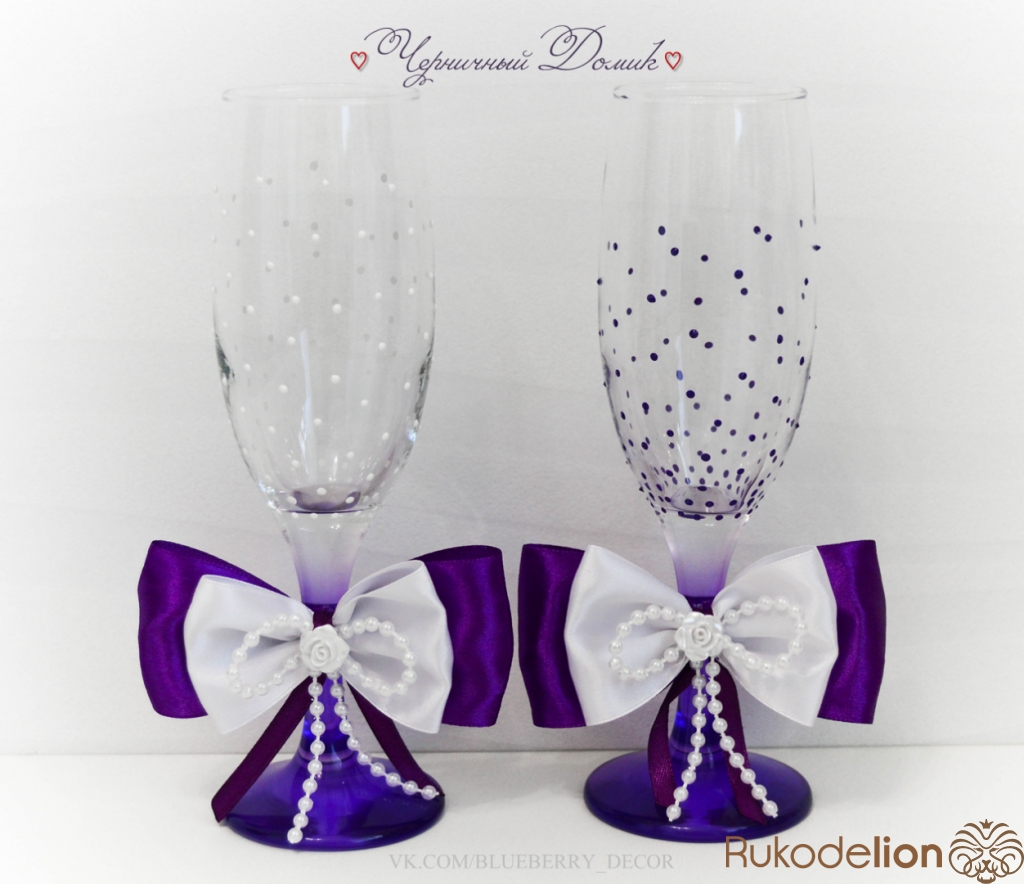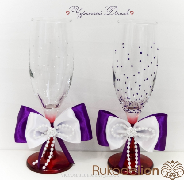 Свадебные бокалы для молодоженов и свидетелей с многослойным бантом.
