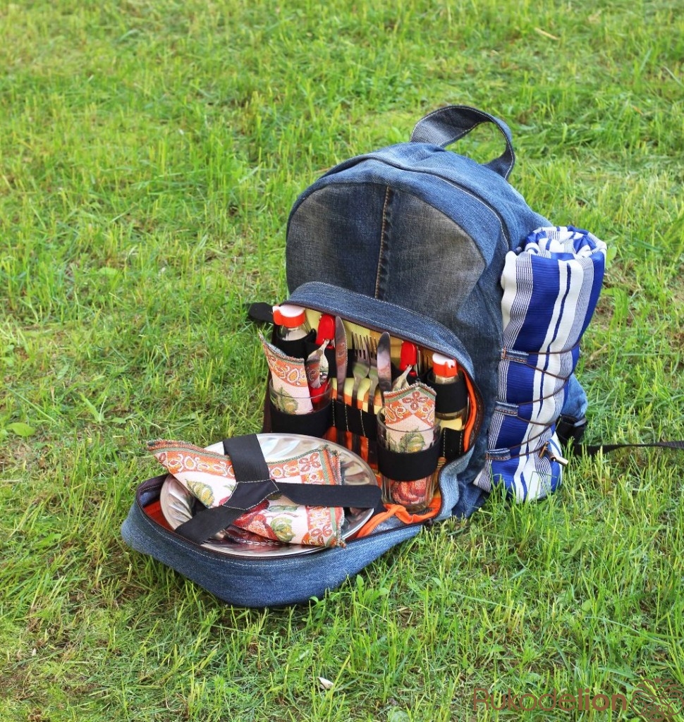 В солнечный денёк часто так хочется пообедать на свежем воздухе в окружении сочной зеленой травы, веселого пения птиц и ласковых прикосновений лучиков теплого солнца! Пикник для этого — чудесная возможность! Его можно устроить на берегу моря или реки после купания, как раз тогда, когда просыпается аппетит! Так вот, к чему это я. Недавно я увидела в продаже сумки и рюкзаки для пикника, и мне та-а-ак захотелось... Вот и решила поэкспериментировать на трех парах джинсов мужа :) и тех материалах, которые были у меня дома на тот момент, потому сразу оговорюсь, что буду заменять некоторые профессионально используемые материалы, так сказать, на то, что было, но напишу, что действительно следует использовать! И поделюсь с вами тем, что получилось! Я решила, что рюкзак будет удобнее, потому сошьем его!