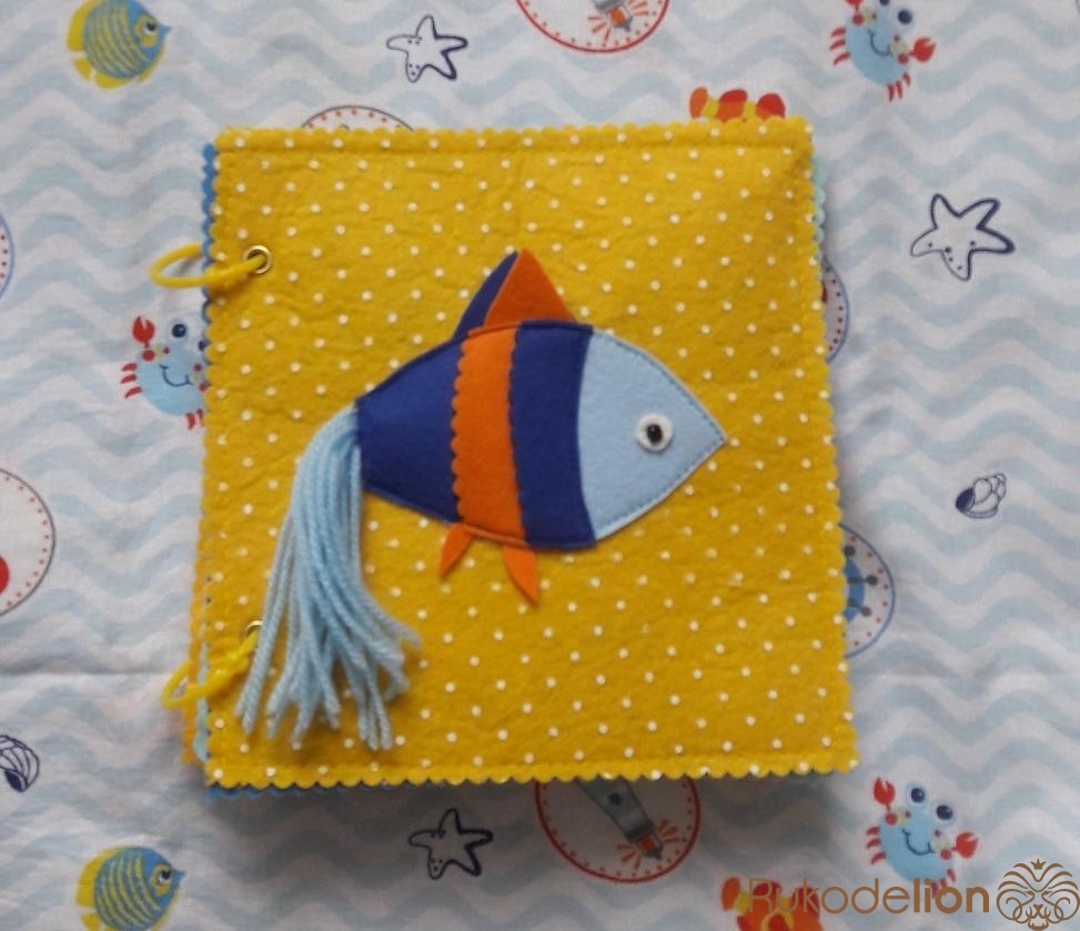 Мы сошьем с вами съемную игрушку - искалку "Веселый скат".Вырезаем детали согласно выкройке.Оформляем лицо ската и пришиваем желтые пятна.Берем папку и вырезаем овал чуть больше,чем наше отверстие в лицевой стороне,пришиваем. К задней части игрушки пришиваем жесткую часть липучки.К основе странички мягкую часть липучки.Теперь сшиваем лицевую и заднюю часть игрушки,оставив не прошитым хвост,через него мы засипим в игрушку бисер и пуговицы.После этого хвост прошиваем.Игрушка готова.К основе странички пришиваем цифру 1.