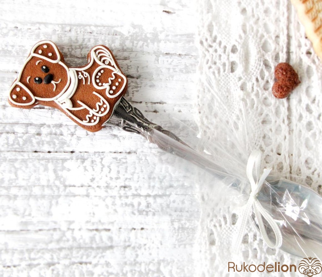 И теперь отправляем ложку на полное запекание, согласно инструкции к полимерной глине. Потом собачку можно будет приклеить к ложке эпоксидным клеем, если вы хотите, чтобы она была несъемной. Такую ложечку можно мыть под краном.
