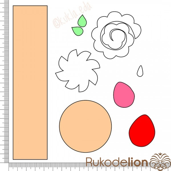 - Фетр: коричневый, белый, красный, розовый, зеленый;