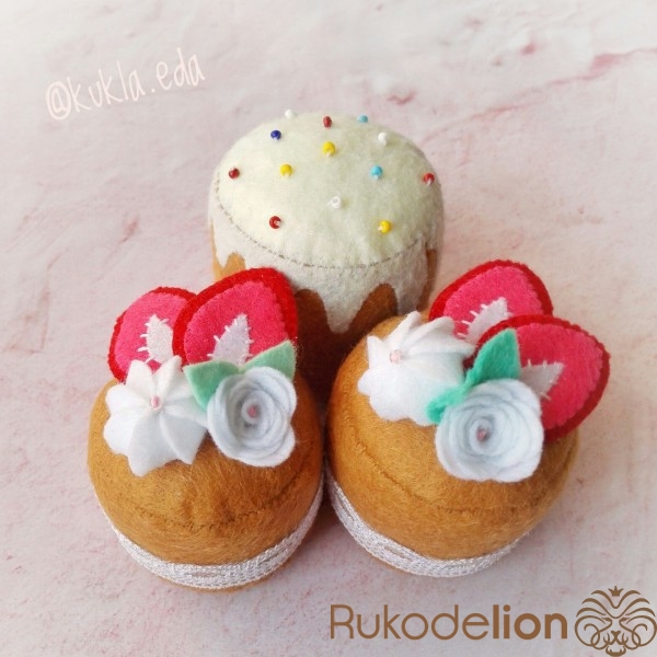 Чтобы сшить Кекс из фетра с клубничкой понадобятся: