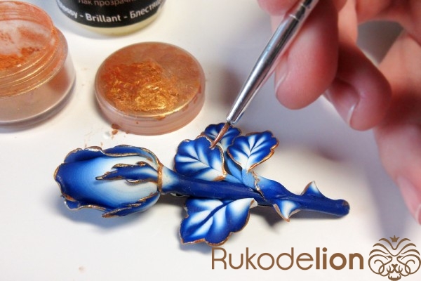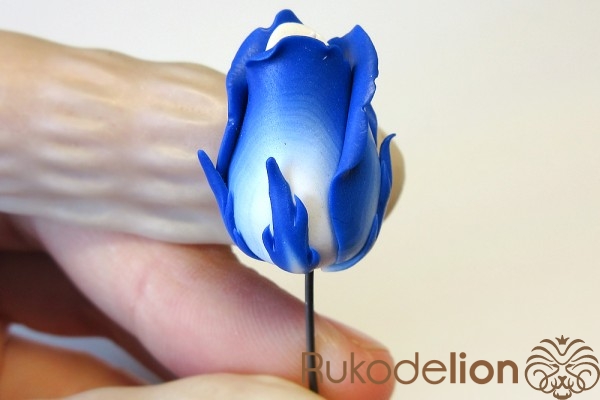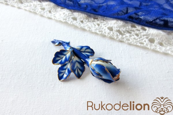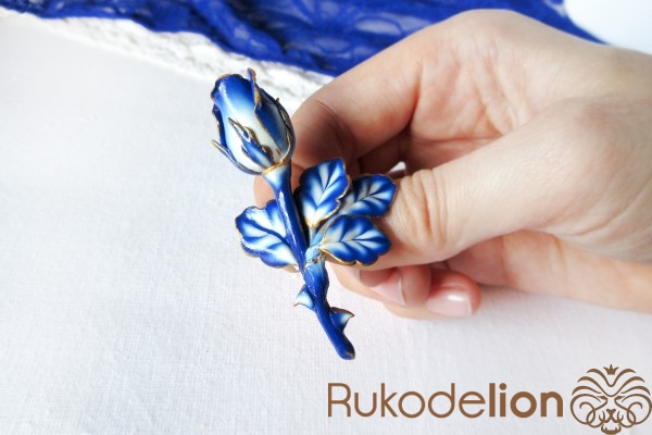 В этом мастер-классе вы увидите, как из полимерной глины создать очень оригинальную и стильную брошь в виде бутона розы с расцветкой в стиле «гжель».