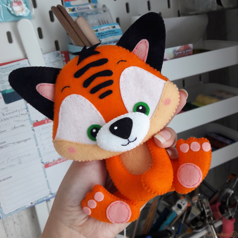 Сегодня вместе с вами мы сошьем из фетра вот такого тигренка на будущий мобиль .