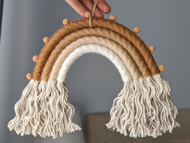 В набор входит - шпагат из хлопка 4 шт., пряжа для обмотки 4 цвета, шнурок для подвешивания и помпоны для декора.