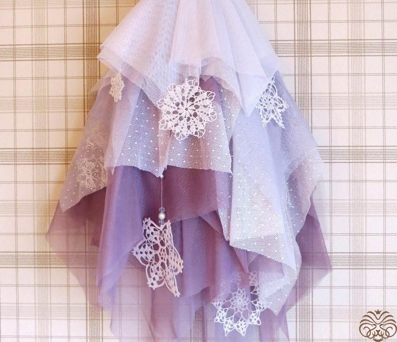 У меня снежинки ручной работы (связанные крючком) и украшенные бусинками.