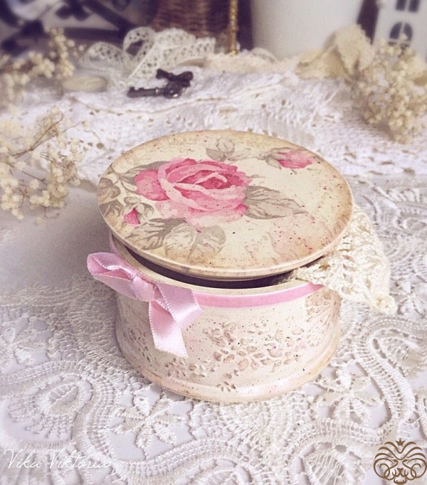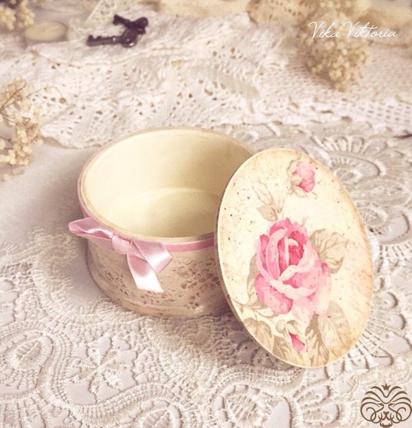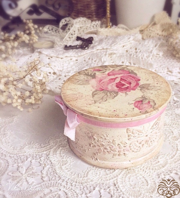 Шкатулочка выполнена в технике декупаж в стиле шебби шик.