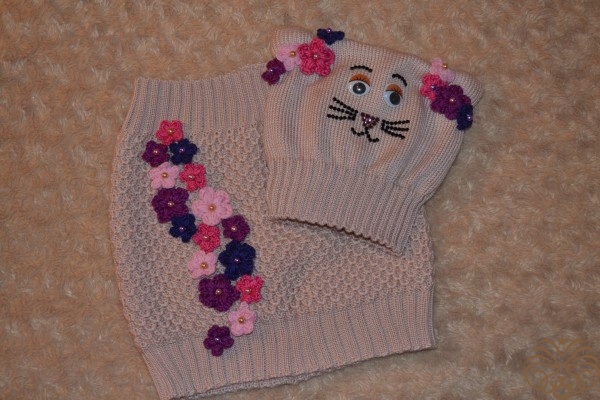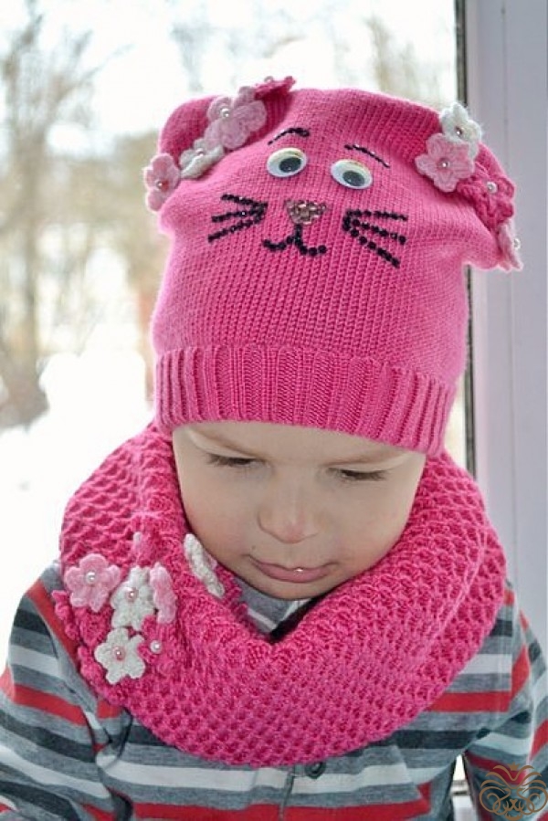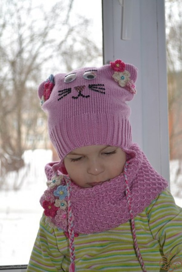3. Выкладываем мордочку на шапочке стразами, приклеиваем утюгом, через тряпочку,