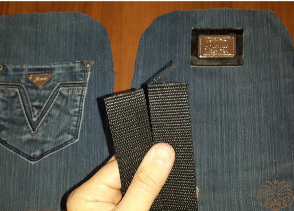 Для раскроя лицевой стороны и спинки я советую использовать заднюю часть джинс, самую верхнюю (наши "бёдра").
