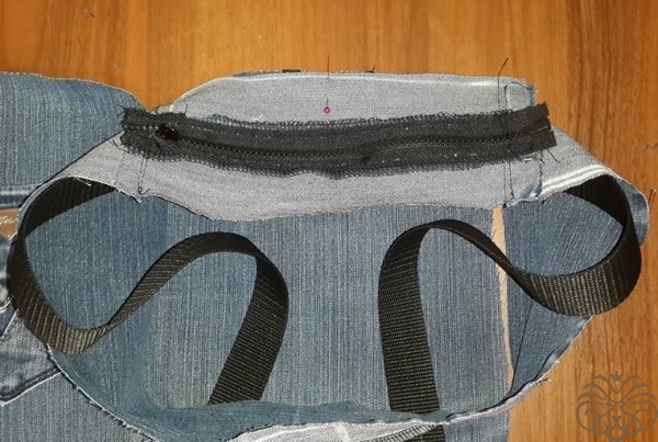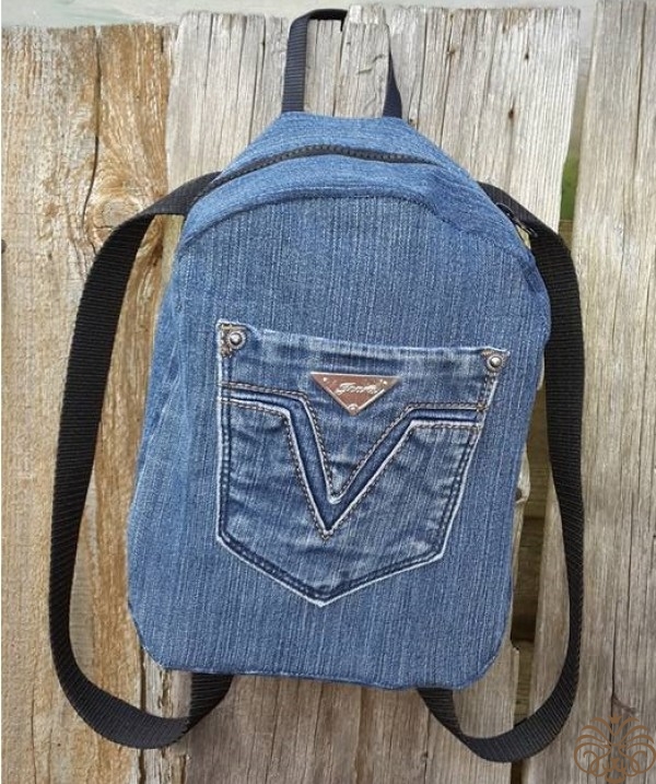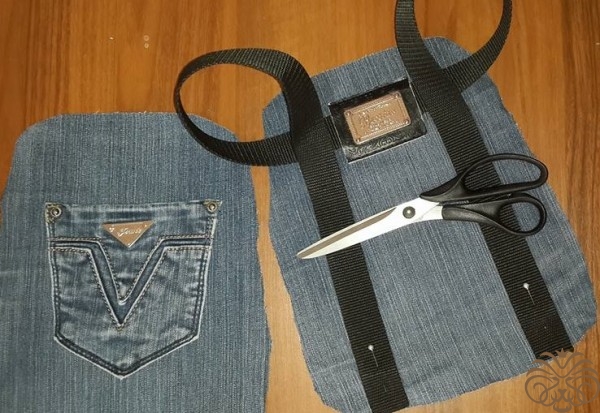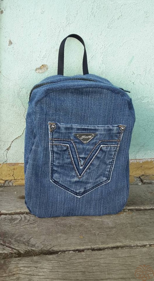 Пришиваем к лицевой стороне рюкзака карман с джинсов.