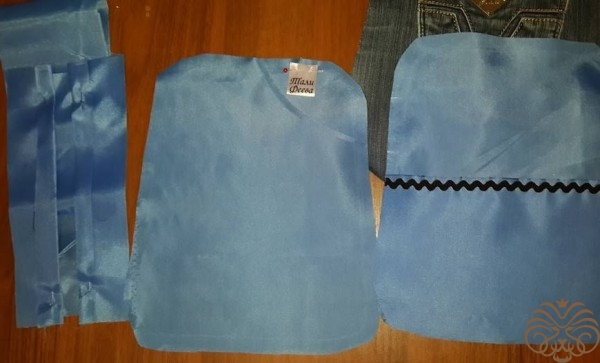 Если у вас есть свои авторские ярлыки (шильдики), то пришейте один к верхнему срезу лицевой части подклада. При сборке уже не забудете его вшить (я так часто забываю!)