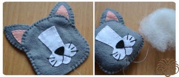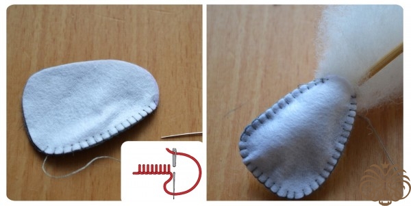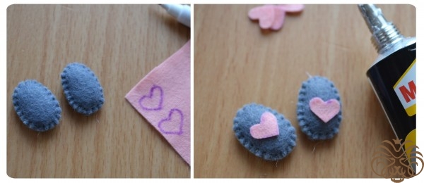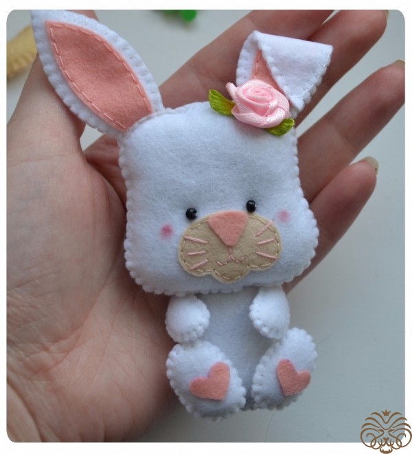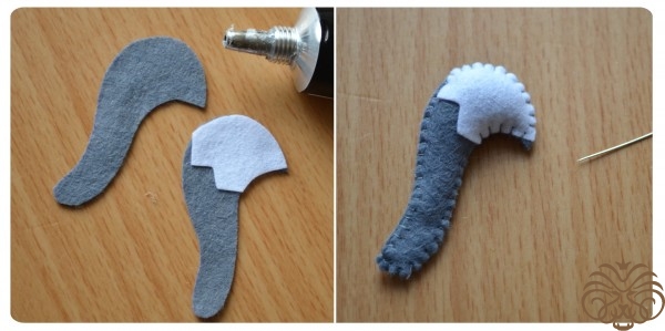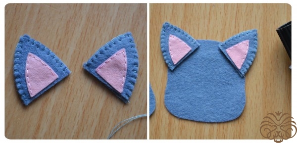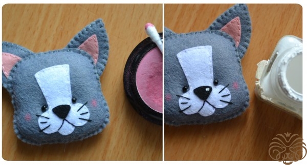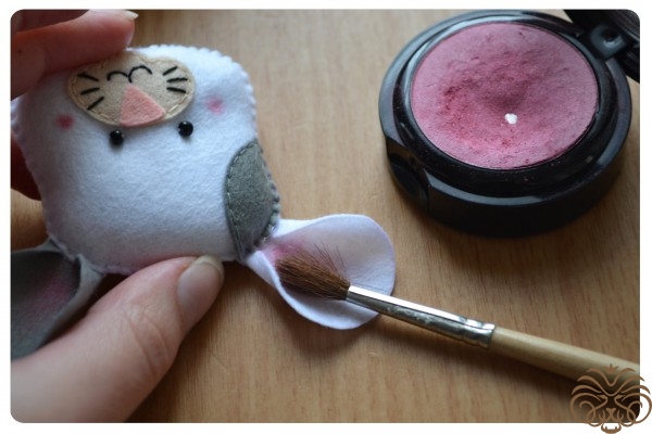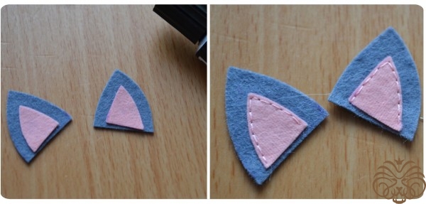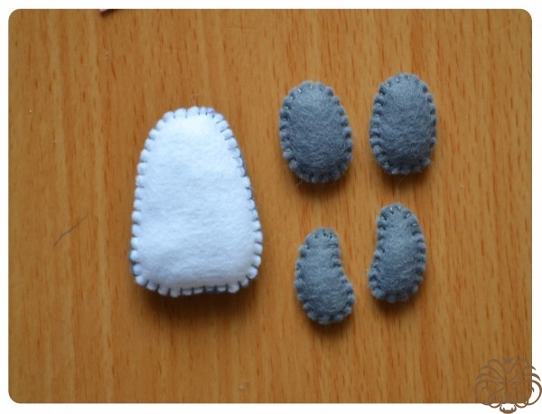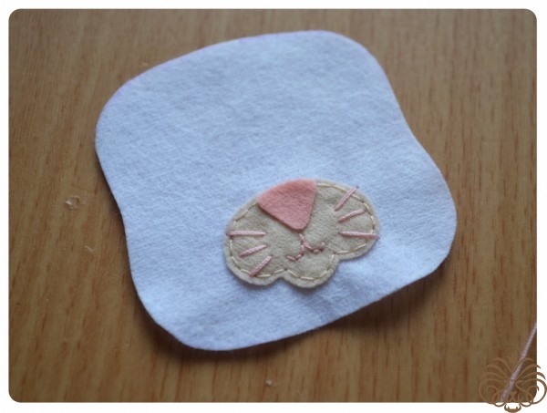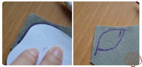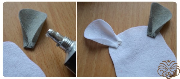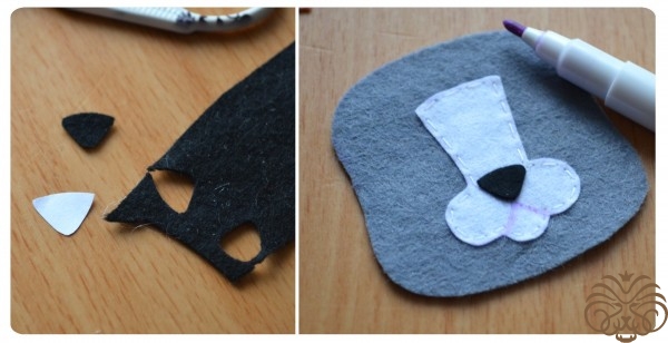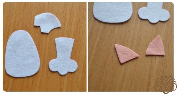 На белом фетре самоисчезающим маркером обводим тело 1 деталь, кончик хвоста 1 деталь* и мордочка 1 деталь. Вырезаем. Также по выкройке вырезаем розовые внутренние части ушек.