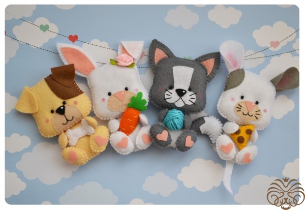 4 фетровых зверя по одной выкройке