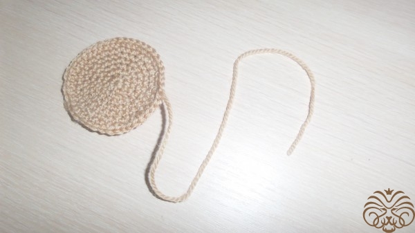 Оберните бежевую нить вокруг пальца и сделайте центральное кольцо.