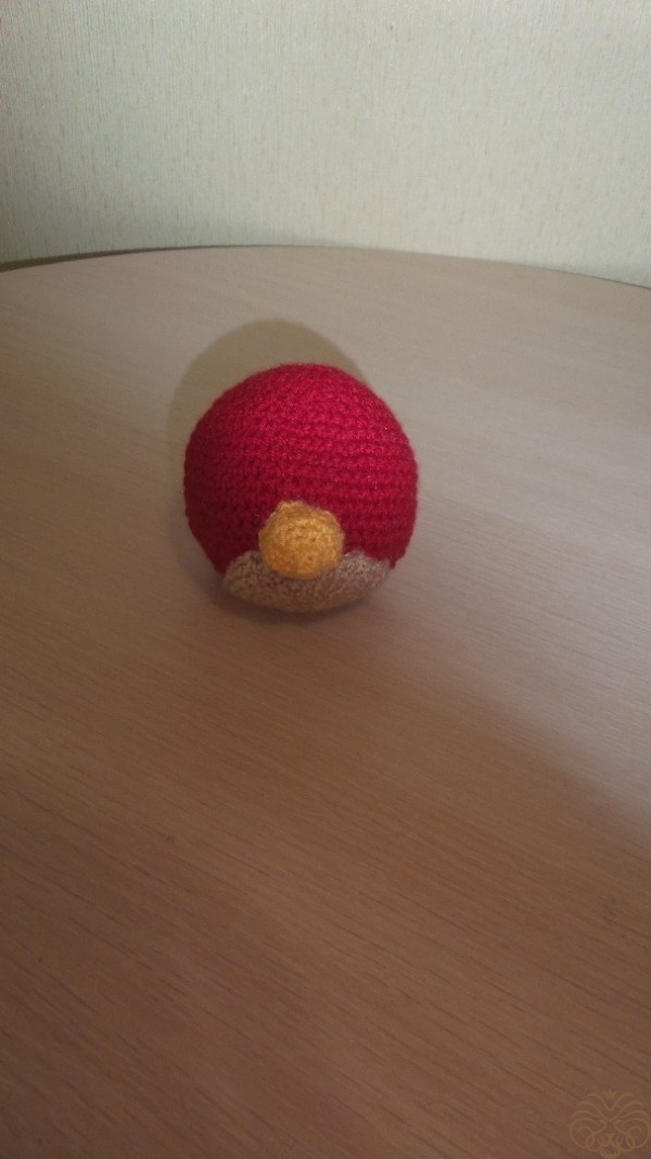 Набейте туловище синтепоном или халлофайбером. Пришейте к туловищу нагрудное пятно. Набейте клюв и пришейте его к туловищу. С помощью иглы и бежевой нити проложите через середину клюва линию. Пришейте хохолок к верху туловища. Вережьте глаза из белого и черного фетра, брови и хвост- из черного. Приклейте фетровые части с помощь термо пистолета.