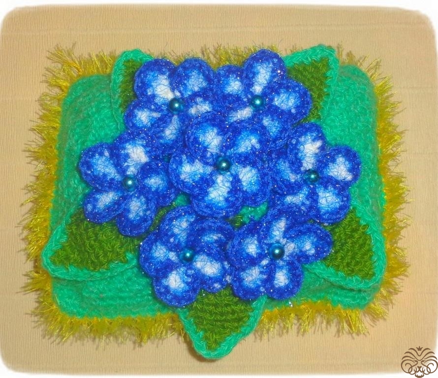 Подушка вяжется из двух половинок, которые вяжутся двумя узорами: шахматным и жемчужным. Для вязания подушки используются разноцветные мягкие нитки для вязания, а именно, акрил, данные нити, не колющиеся, и имеют насыщенную расцветку.