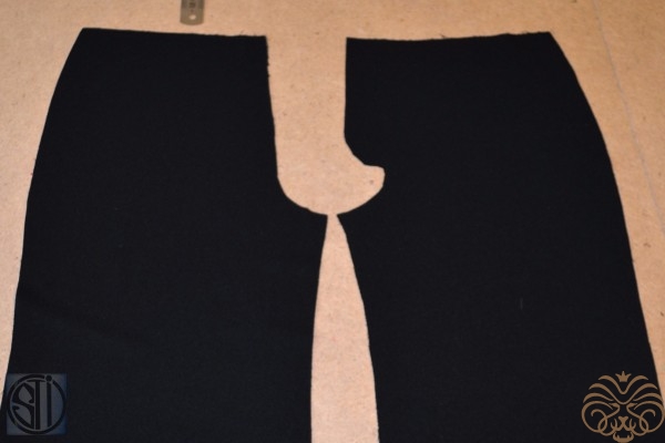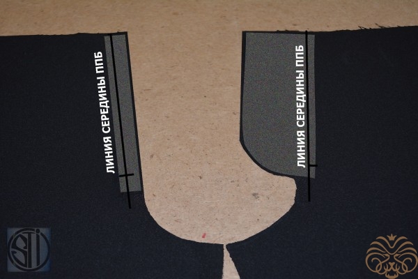 1. Левая передняя половинка. Обратите внимание, что средний срез прямой! На левой стороне обрабатывается так называемый ОТКОСОК - внутренняя дополнительная деталь.